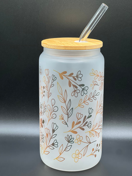 Cutesy Cow & Pumpkins frosted sublimation 16oz Glass Can